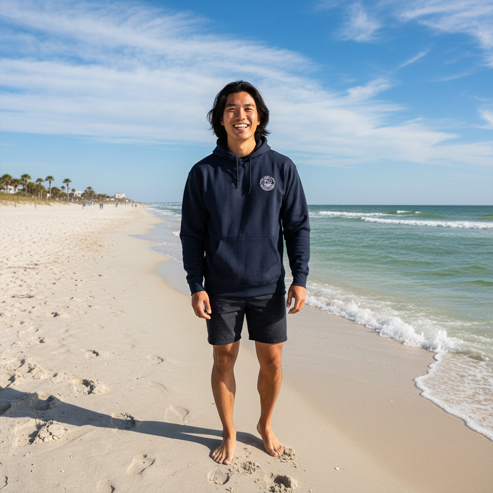The Let’s Roam Hoodie — built for early risers and coastal roamers. This is your go-to layer for cooler mornings, late-night bonfires, and everything in between. Made from a soft, durable cotton-poly blend, it’s smooth to the touch and tough enough to keep up with your untethered lifestyle. With a double-lined hood, reinforced stitching, and a roomy pouch pocket, it’s the sweatshirt that moves with you — wherever you roam.