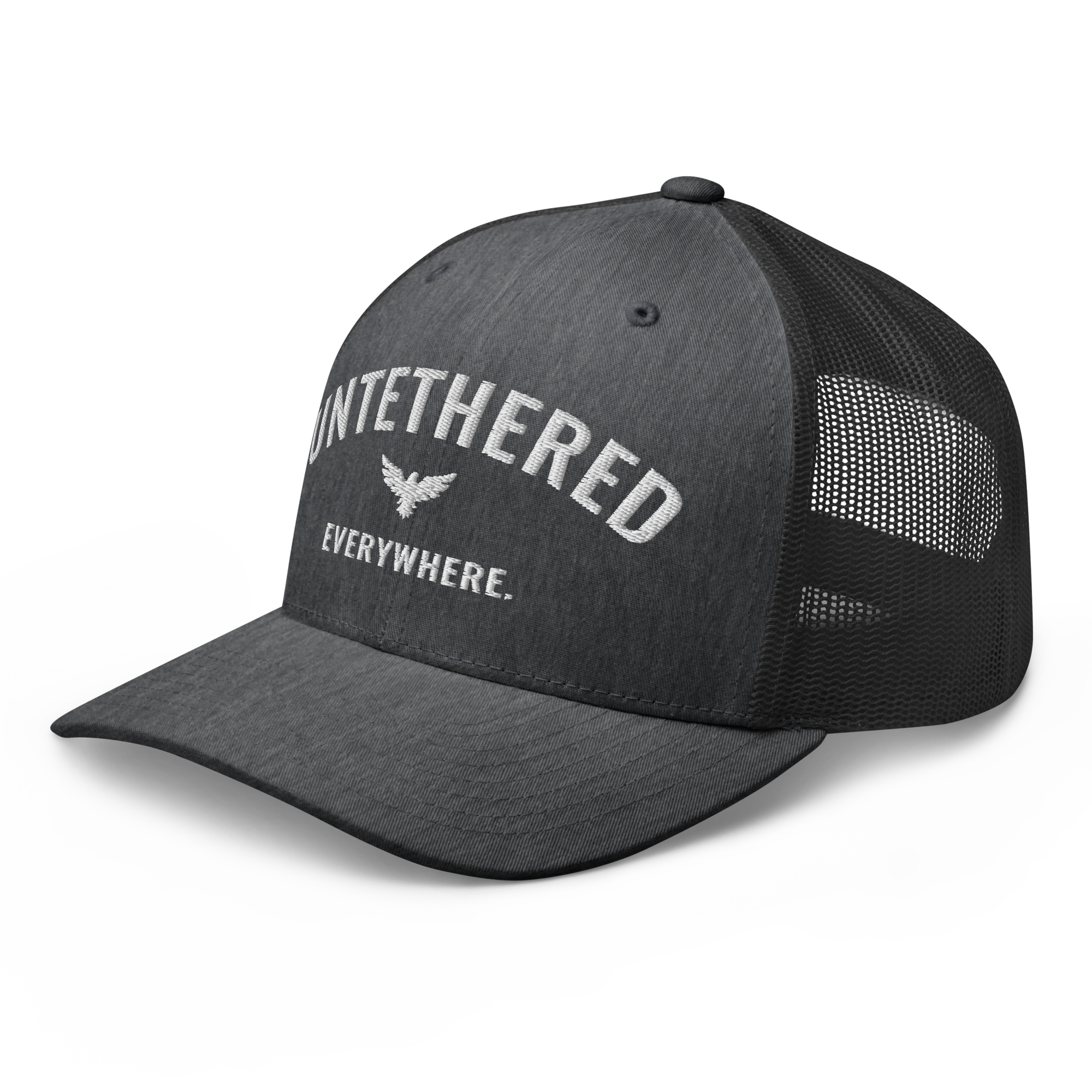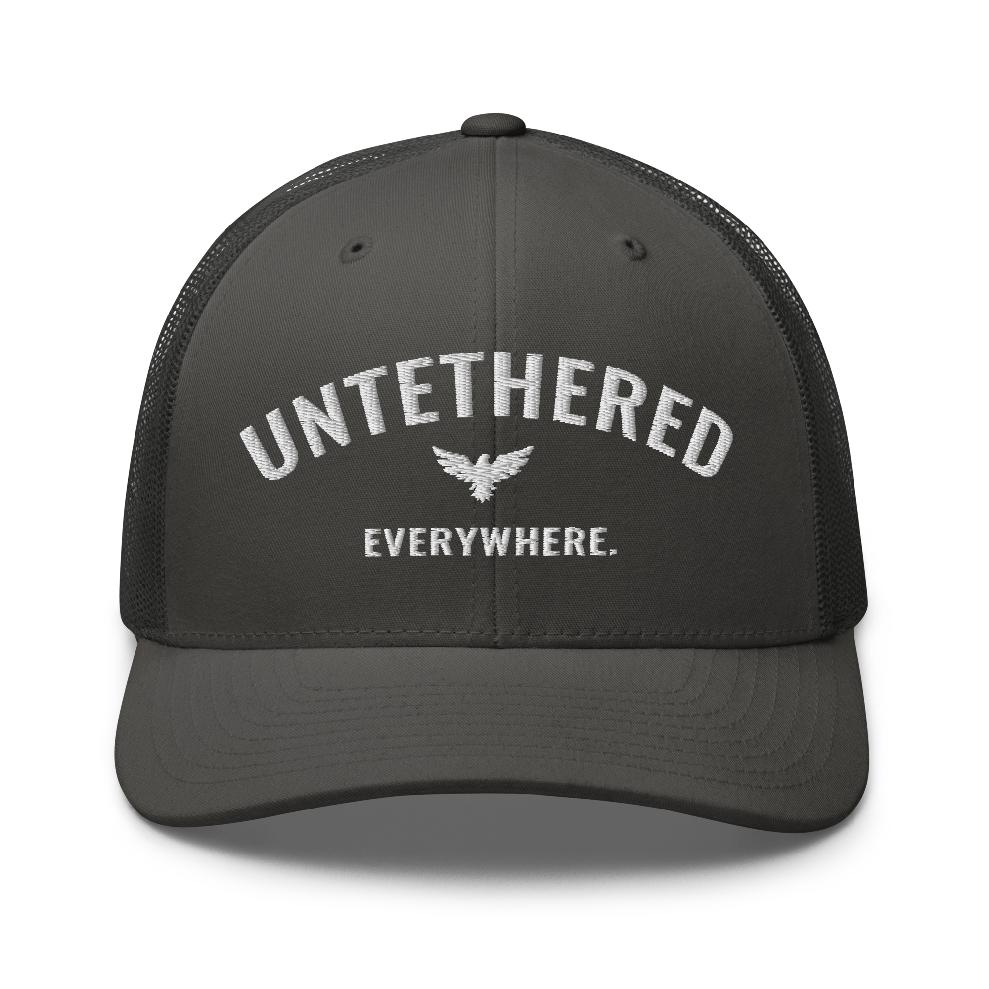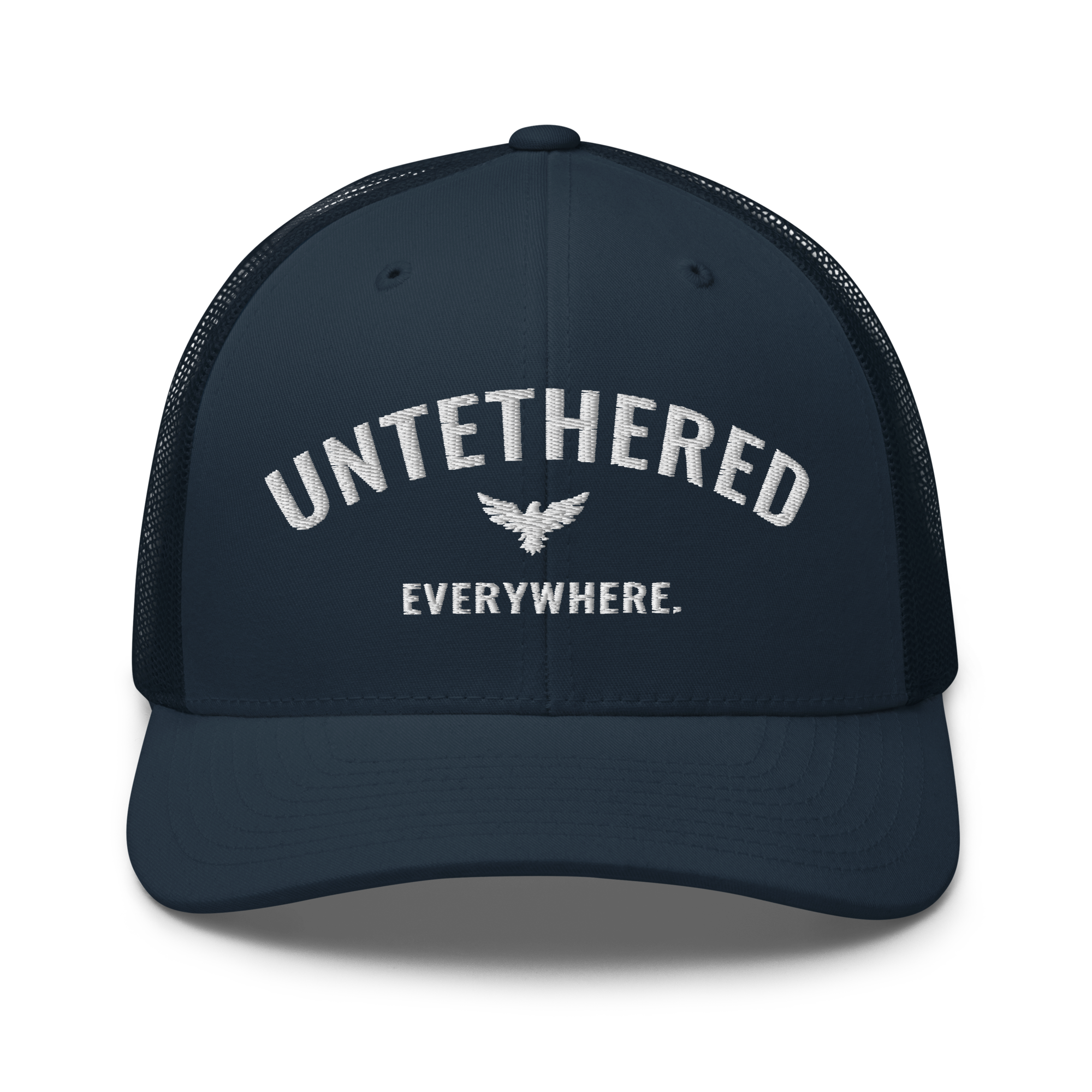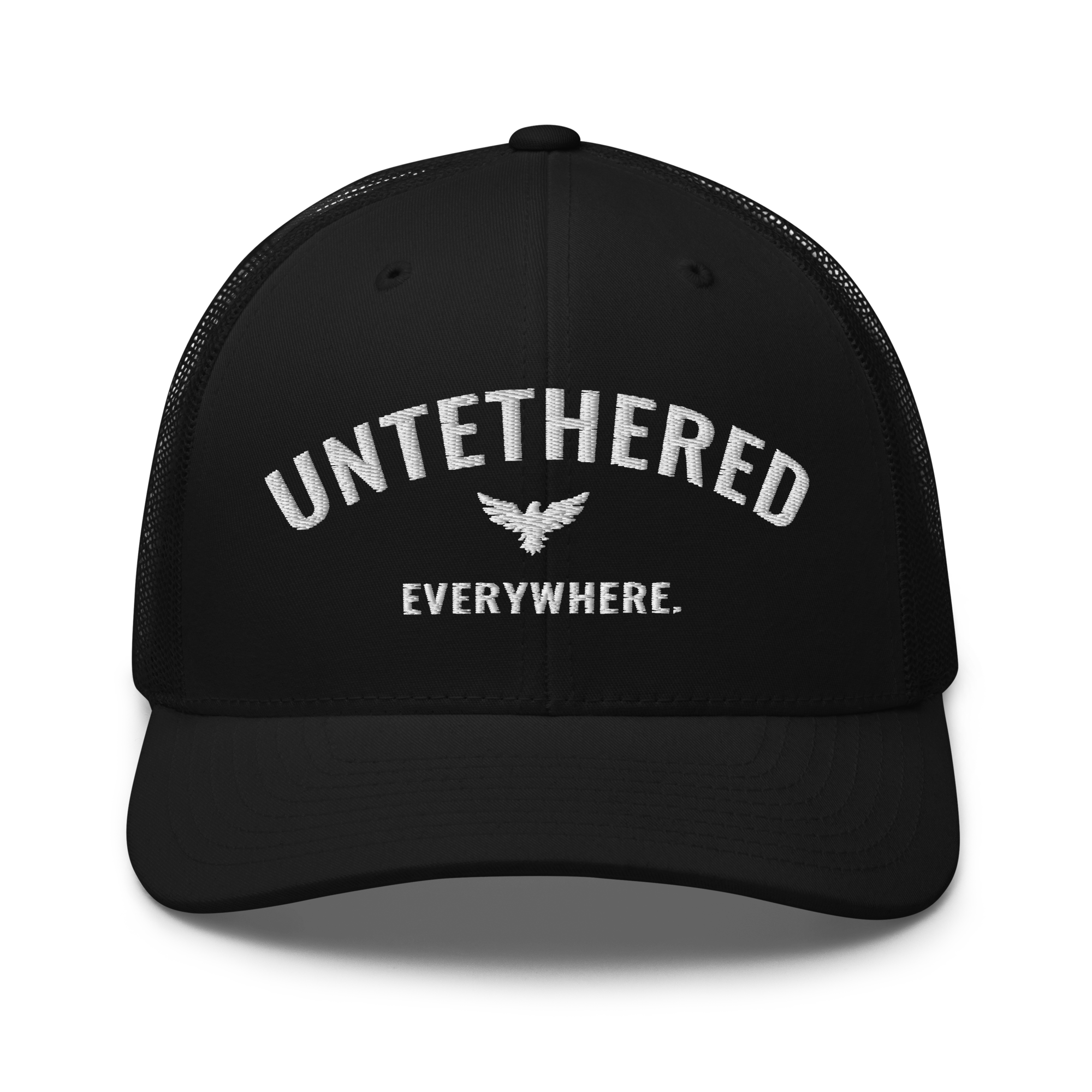 Go untethered in this embroidered trucker hat built for roamers, riders, and early risers. With a structured six-panel design and breathable mesh back, it’s made to handle sun-soaked coastlines, winding trails, and wherever your day takes you. The bold Untethered Everywhere embroidery keeps your mindset front and center — no matter the horizon.