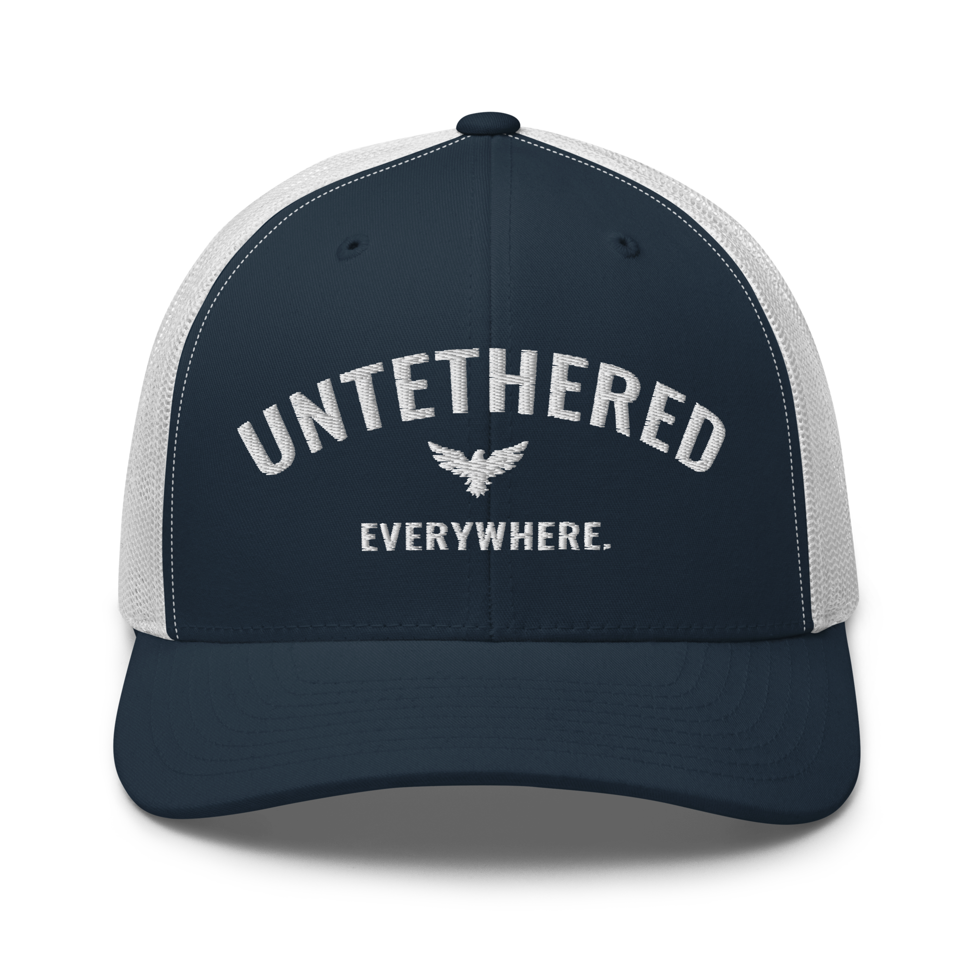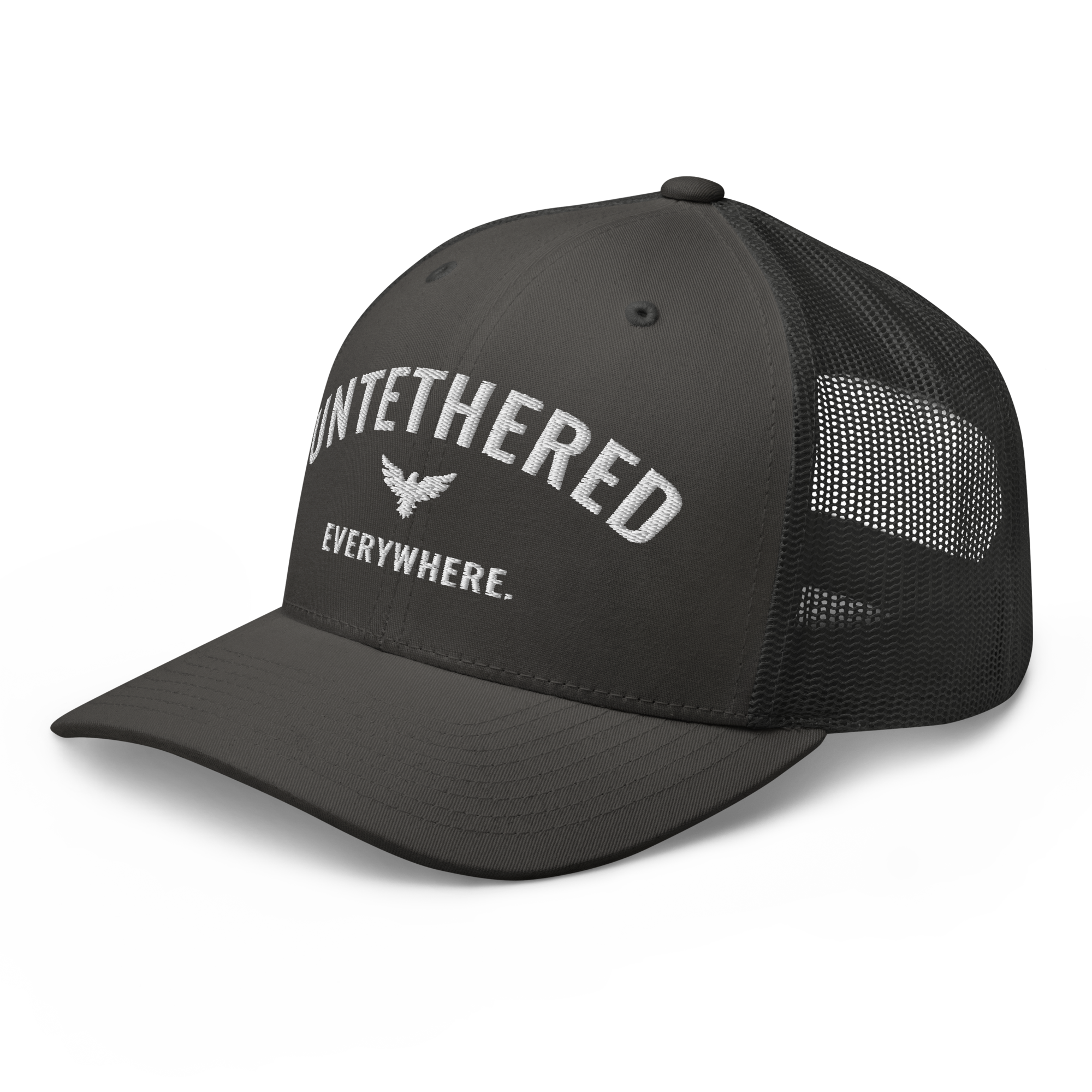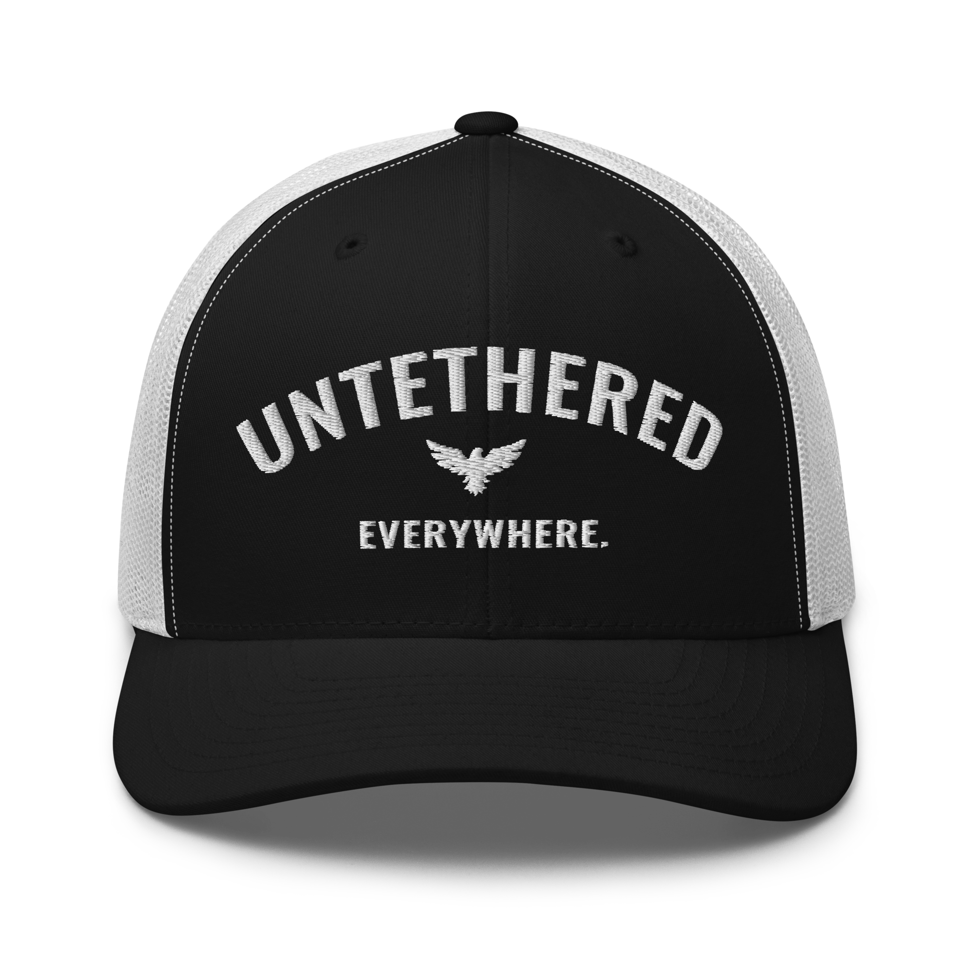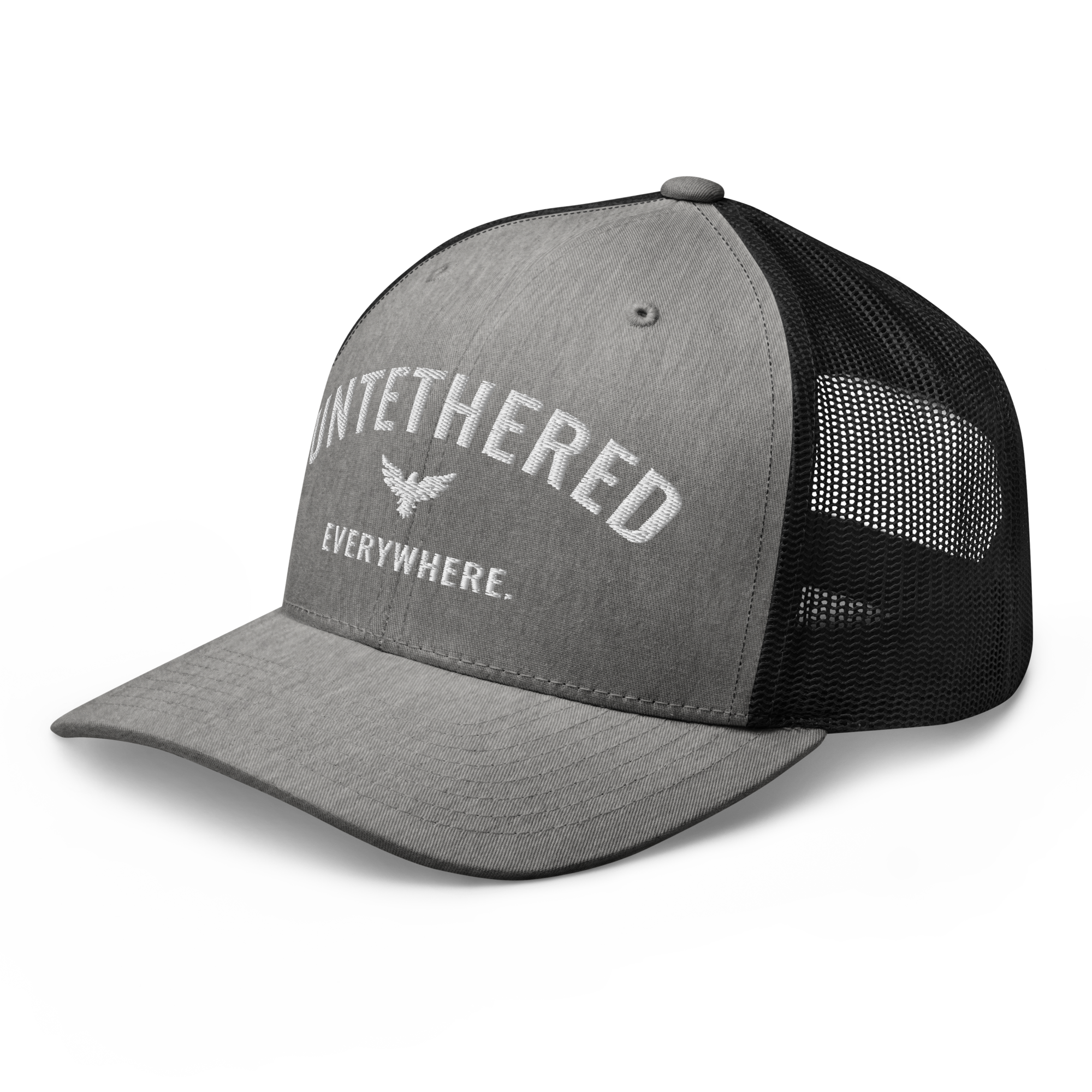 Go untethered in this embroidered trucker hat built for roamers, riders, and early risers. With a structured six-panel design and breathable mesh back, it’s made to handle sun-soaked coastlines, winding trails, and wherever your day takes you. The bold Untethered Everywhere embroidery keeps your mindset front and center — no matter the horizon.