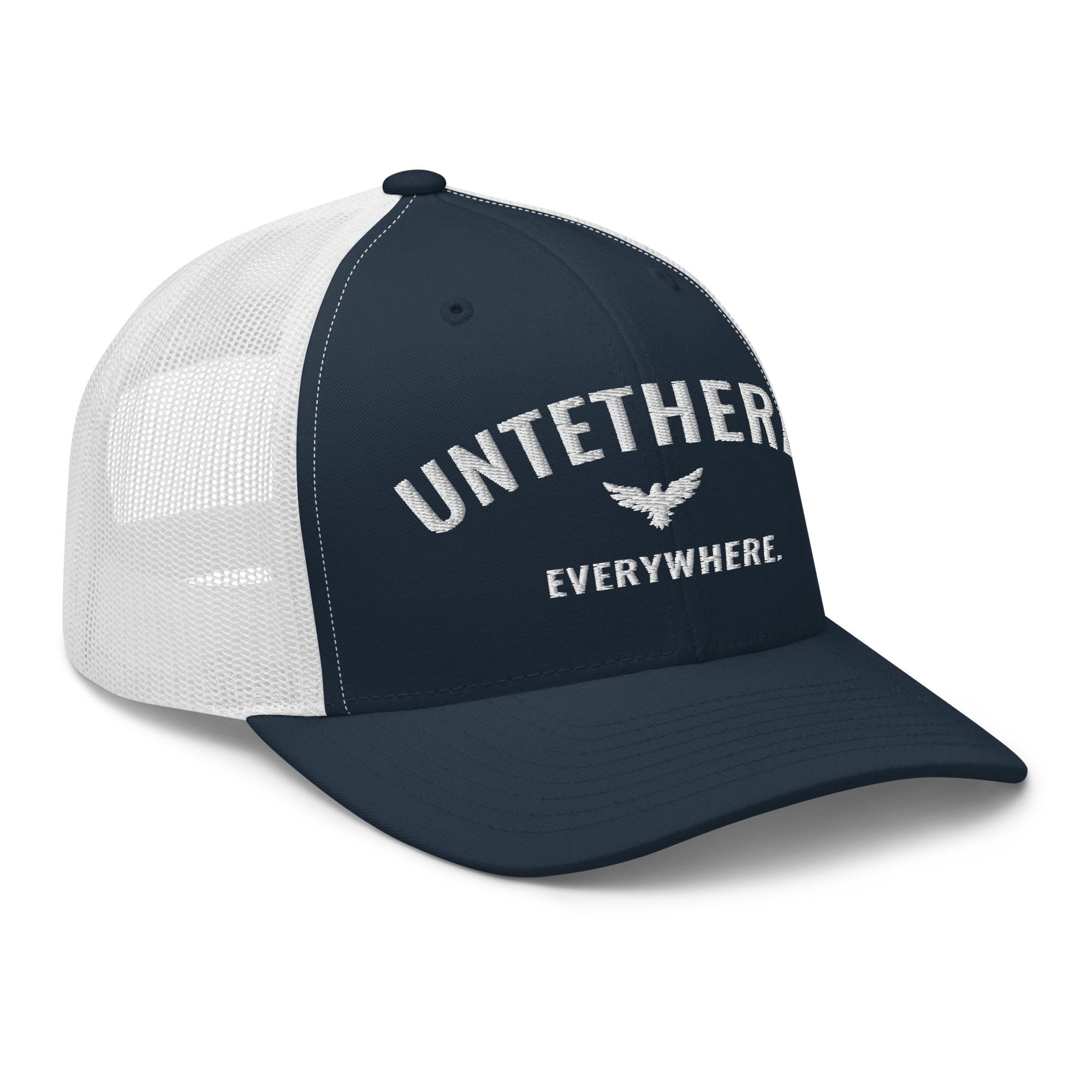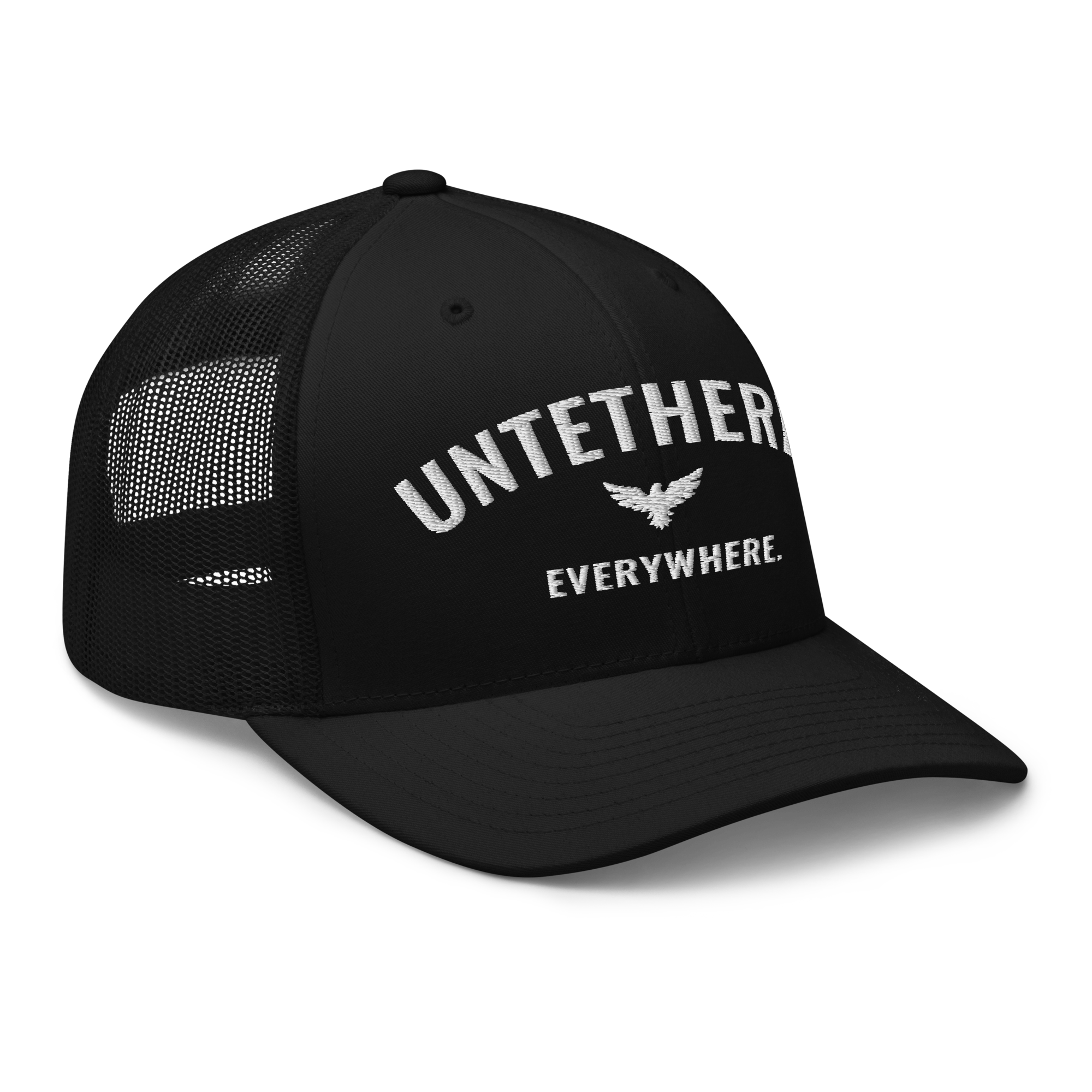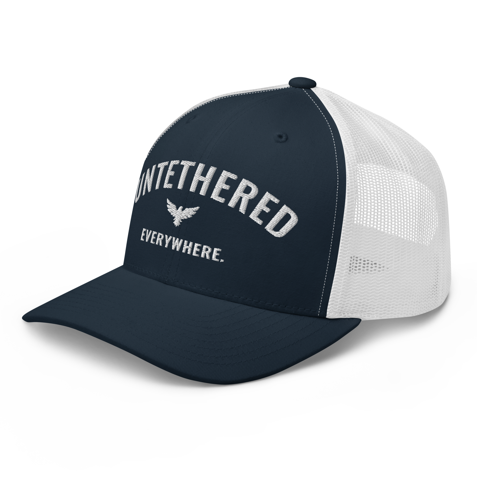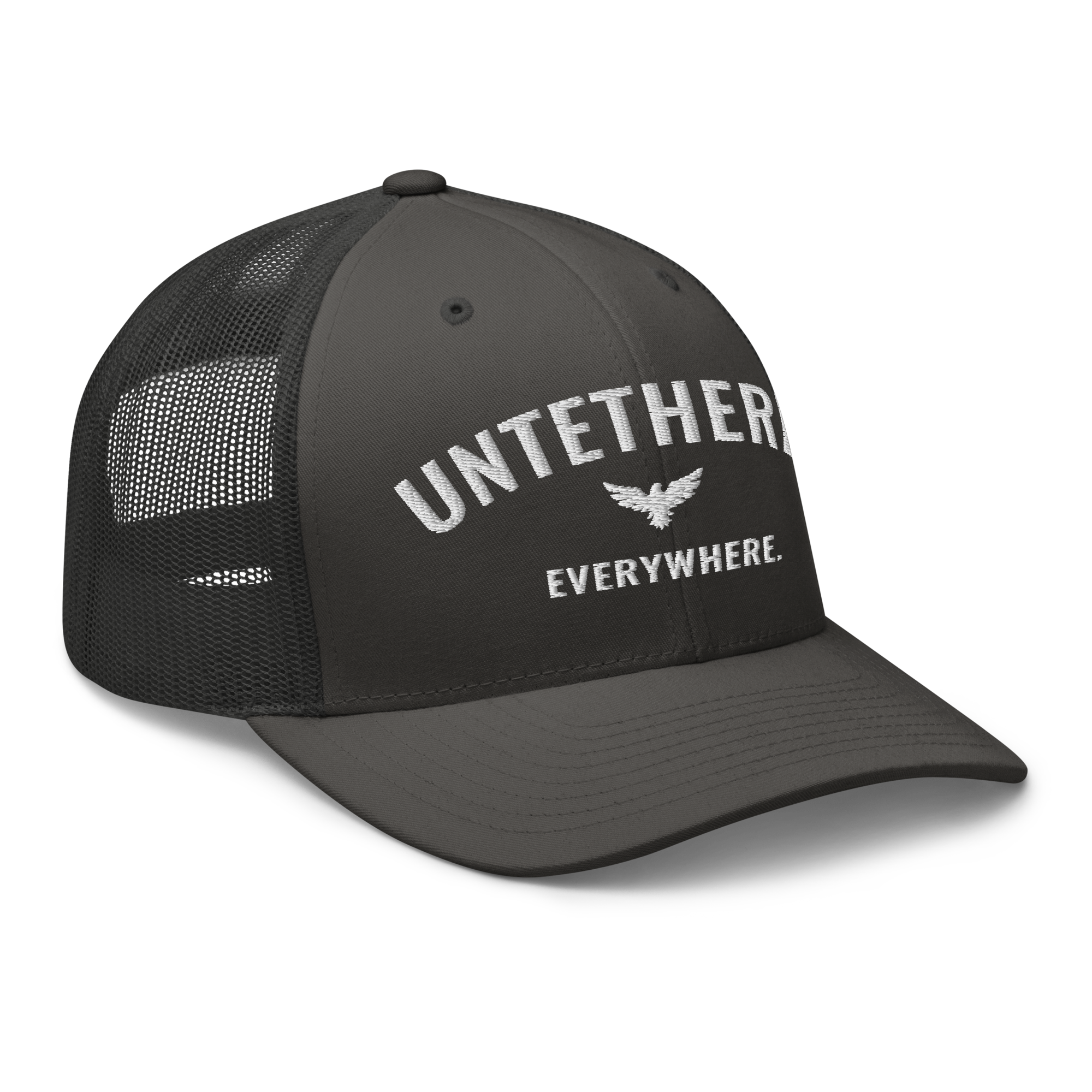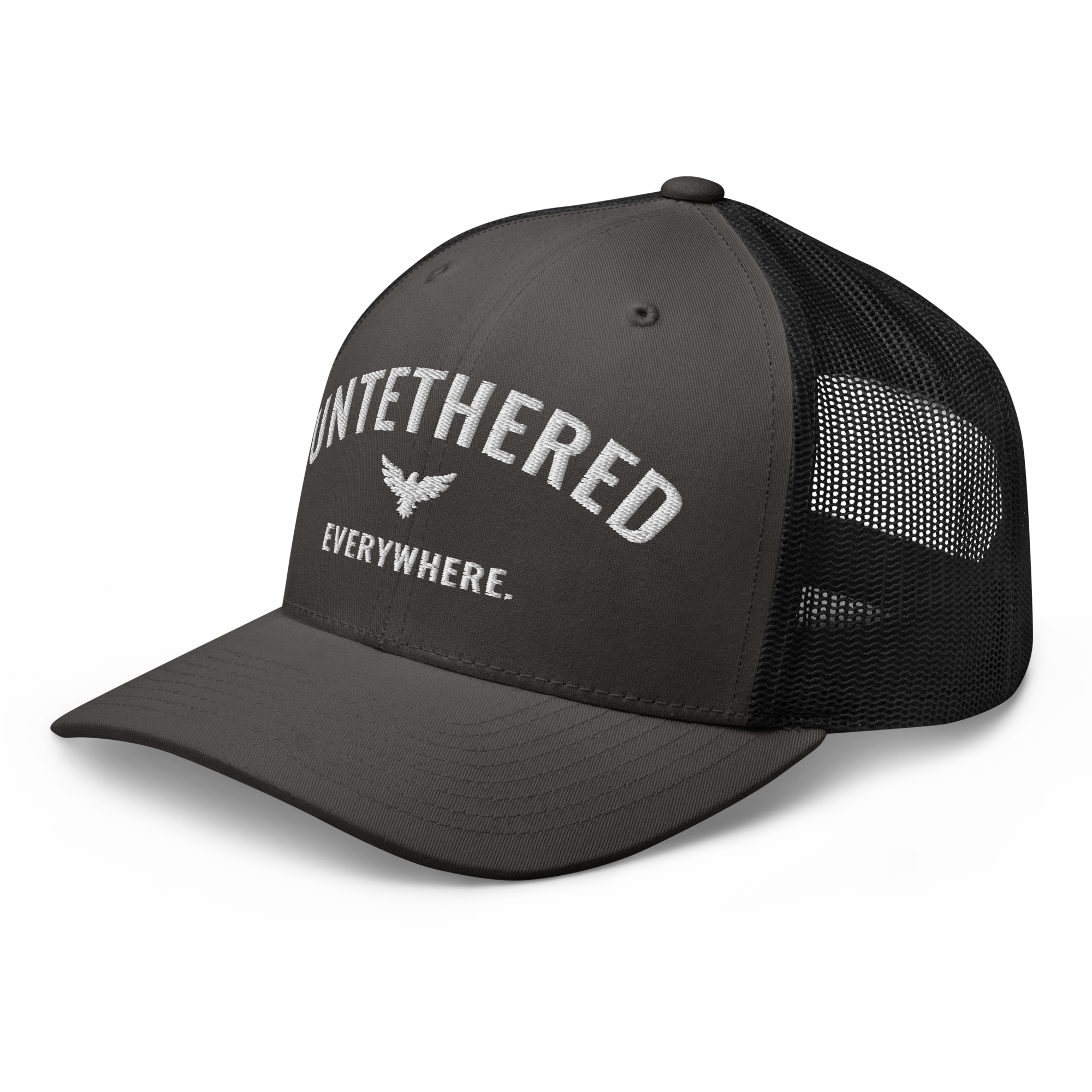 Go untethered in this embroidered trucker hat built for roamers, riders, and early risers. With a structured six-panel design and breathable mesh back, it’s made to handle sun-soaked coastlines, winding trails, and wherever your day takes you. The bold Untethered Everywhere embroidery keeps your mindset front and center — no matter the horizon.