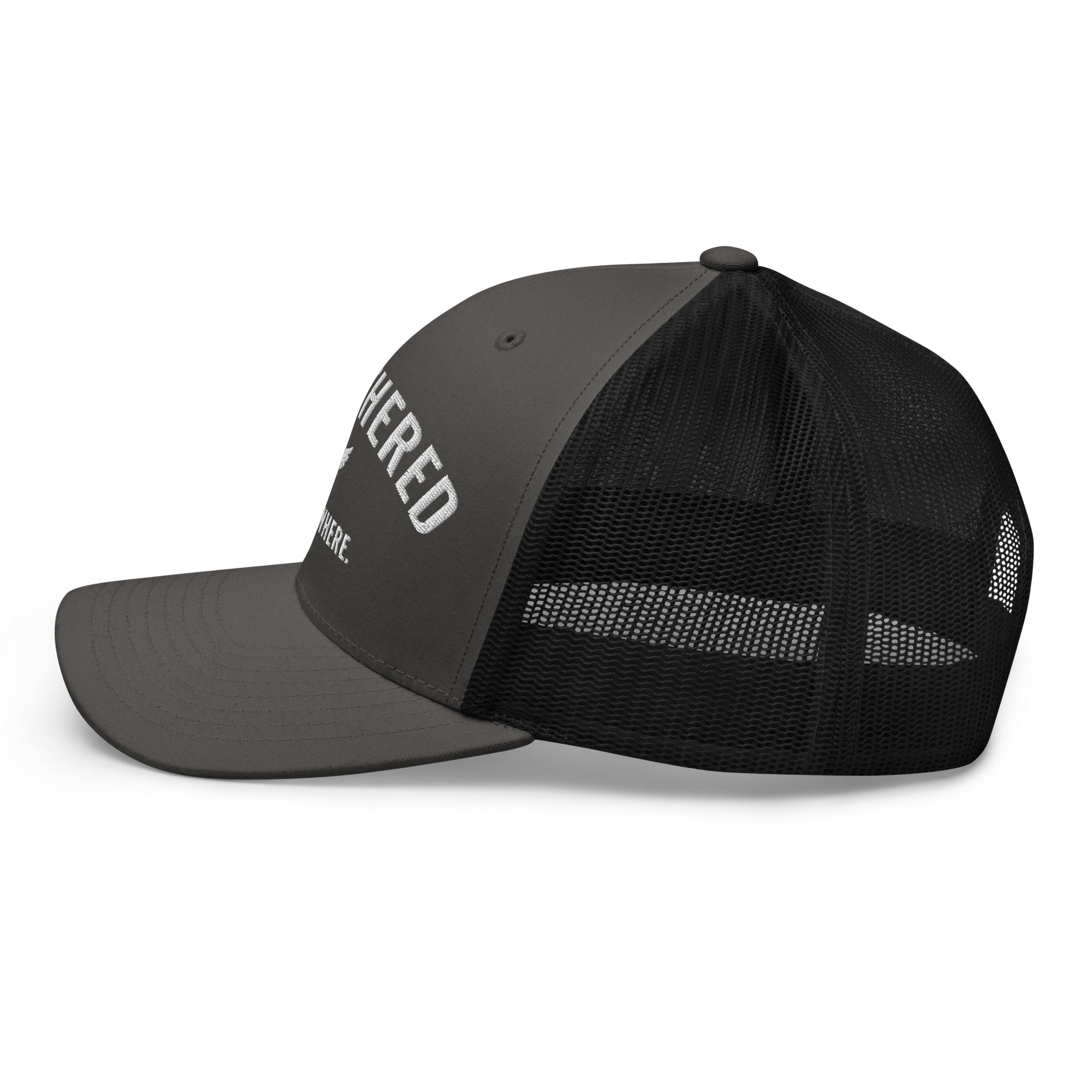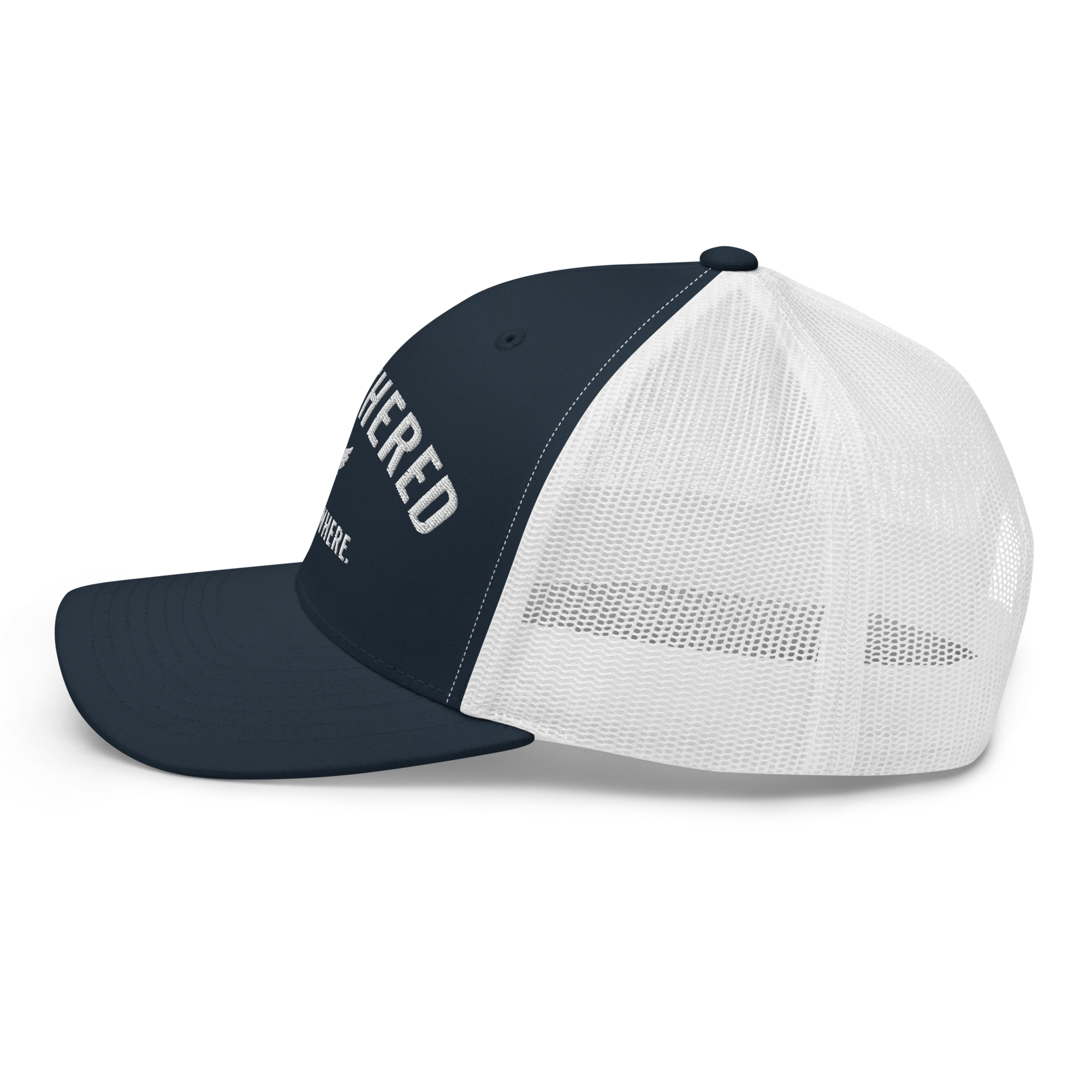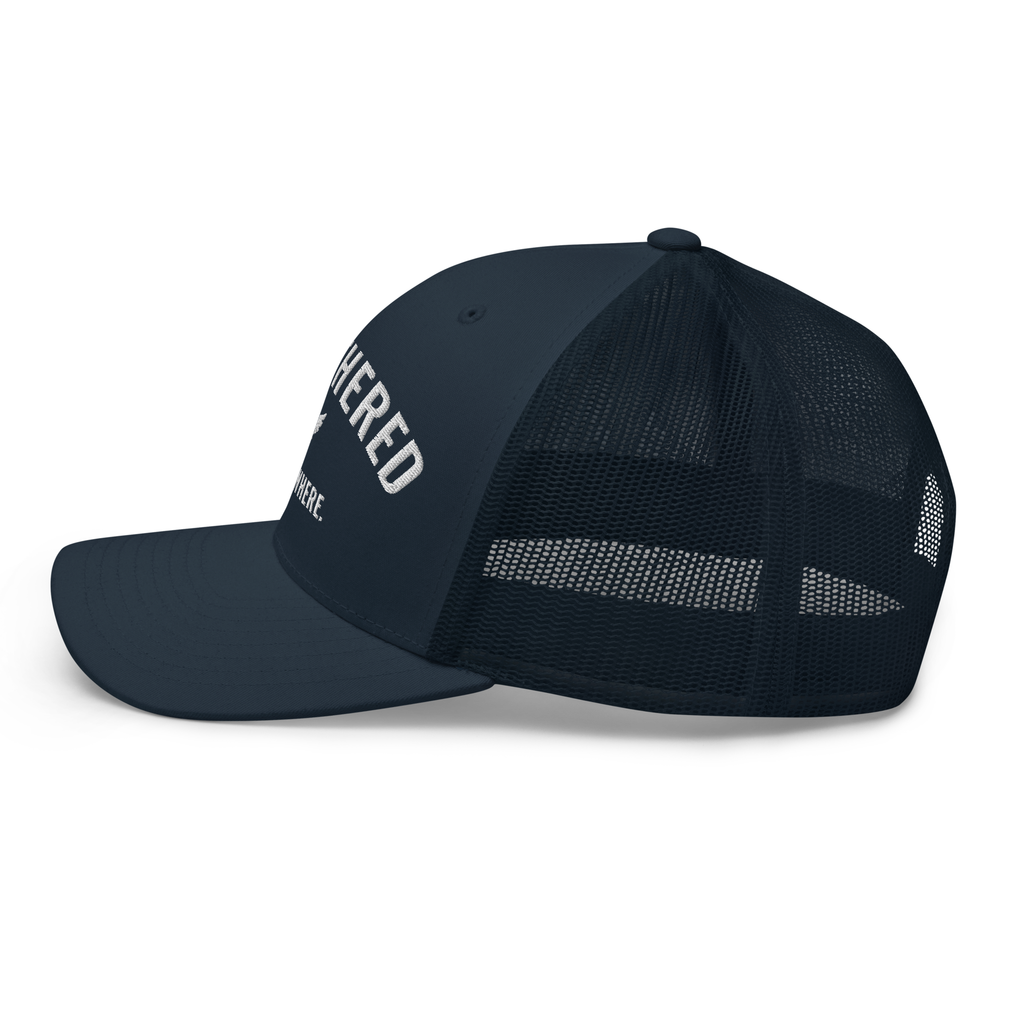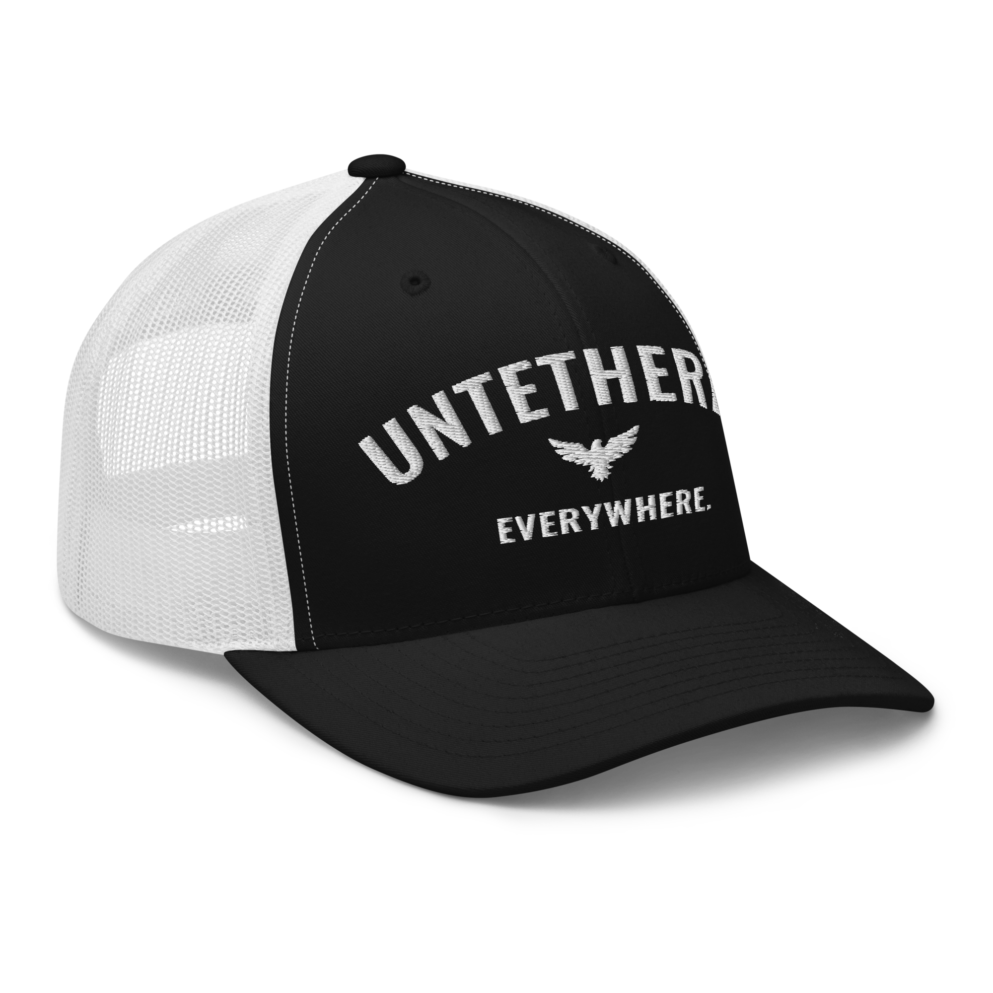 Go untethered in this embroidered trucker hat built for roamers, riders, and early risers. With a structured six-panel design and breathable mesh back, it’s made to handle sun-soaked coastlines, winding trails, and wherever your day takes you. The bold Untethered Everywhere embroidery keeps your mindset front and center — no matter the horizon.